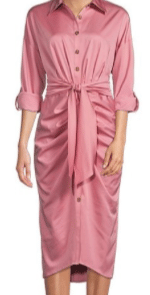 Roxanne Point Collar Long Sleeve Ruched Tie Waste Button Front Shirt Dress, $179